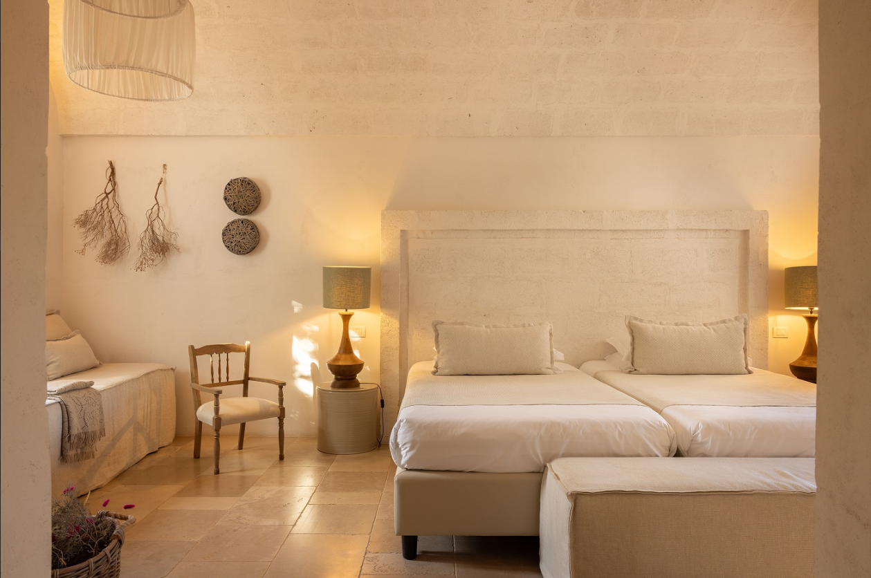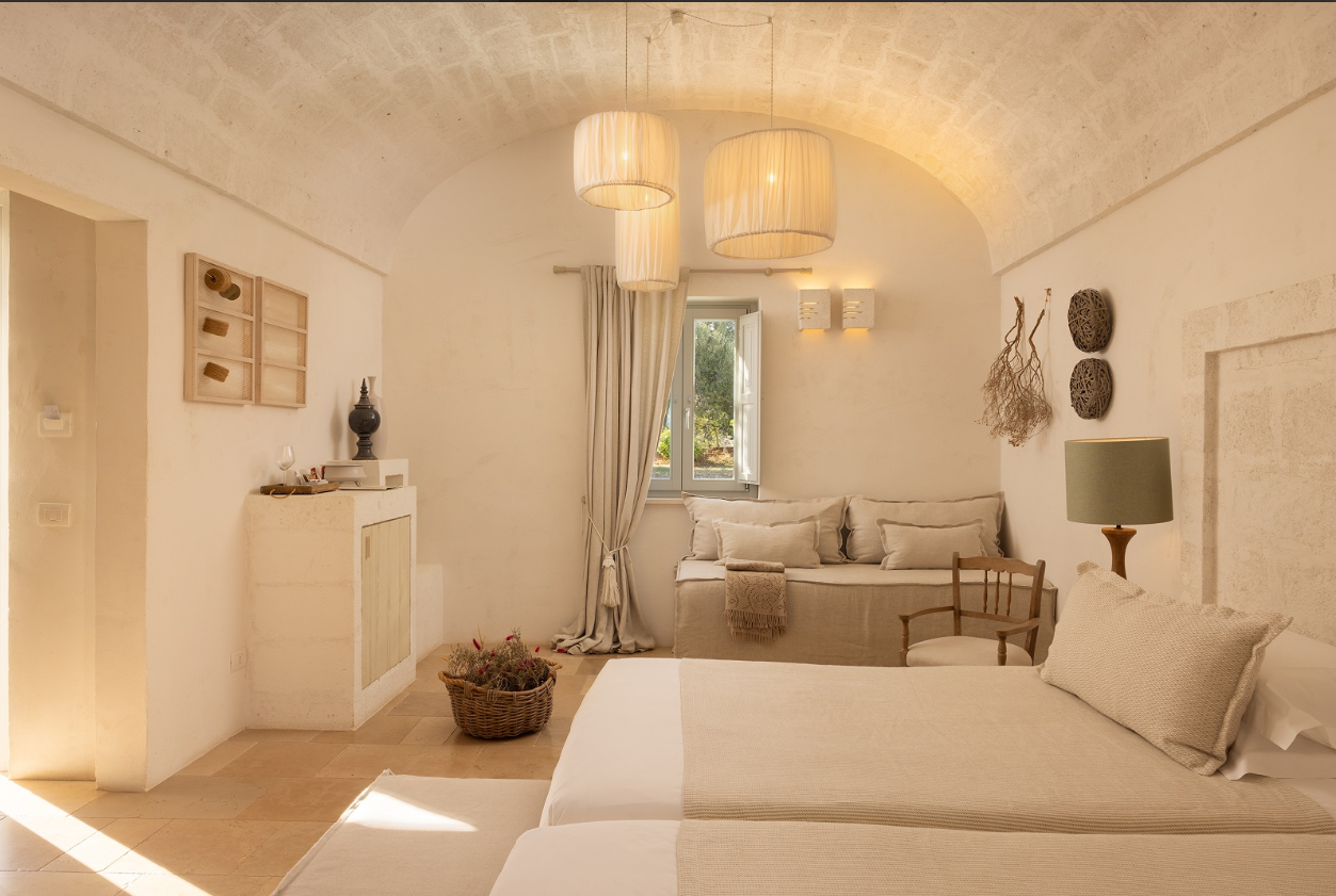 Effortlessly stylish and calm, the Loft Standard celebrates the authentic character of the Masseria. With open-plan living, natural textures, and a beautifully relaxed atmosphere, this room is perfect for guests who value simplicity, comfort, and a true sense of place.